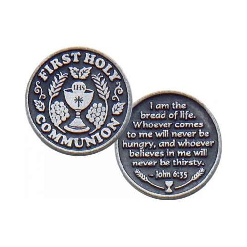 These First Communion Pocket Tokens can be used as gifts or as favors for the party. They are made from genuine pewter and are inexpensive enough for teachers and schools to purchase for a classroom of students. See all First Communion Gifts