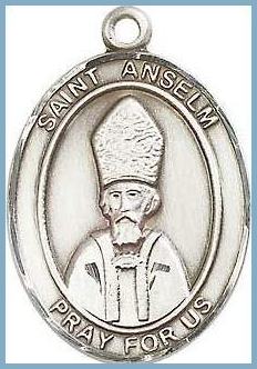 This St Anselm medal is a sterling silver saint pendant with gift box and chain options. This medium size is appropriate for girls, women, young boys and men who prefer smaller religious jewelry. This Catholic medal would make a nice gift for a candidate who chose Anselm of Canterbury for a Confirmation name or for anyone with a devotion to him. He is a Doctor of the Church. His feast day is April 21. We can personalize the back of the pendant for you.