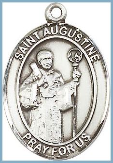 This St Augustine medal is a sterling silver saint pendant with gift box and optional chain. This medium size is appropriate for girls, women, young boys and men who prefer smaller religious jewelry. This Catholic medal would make a nice gift for a candidate who chose Augustine of Canterbury for a Confirmation name or for anyone with a devotion to him. He is a patron saint of England, theologians and sore eyes. His feast day is May 27. We can personalize the back of the pendant for you.