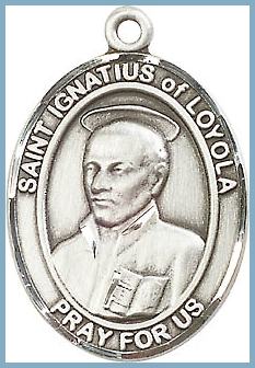 This St Ignatius medal is a sterling silver saint pendant with chain options and gift box. This medium size is appropriate for girls, women, young boys, and men who prefer smaller religious jewelry. This Catholic medal would make a nice gift for a candidate who chose Ignatius of Loyola for a Confirmation name, or for anyone with a devotion to him. He is a patron saint of soldiers and the Jesuits. His feast day is July 31. We can personalize the back of the pendant for you.