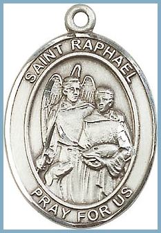 This St Raphael medal is a sterling silver saint pendant with chain options and gift box. This medium size is appropriate for girls, women, young boys, and men who prefer smaller religious jewelry. This Catholic medal would make a nice gift for a candidate who chose Raphael the Archangel for a Confirmation name, or for anyone with a devotion to him. He is a patron saint of love, young people, travelers, and pharmacists. His feast day is September 29. We can personalize the back of the pendant for you.