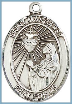 This St Margaret medal is a sterling silver saint pendant with chain options and gift box. This medium size is appropriate for girls, women, young boys, and men who prefer smaller religious jewelry. This Catholic medal would make a nice gift for a candidate who chose Margaret Mary Alacoque for a Confirmation name, or for anyone with a devotion to her. This Catholic pendant includes options for engraving. She is a patron saint of devotees of the Sacred Heart and against the death of parents. Her feast day is October 16. We can personalize the back of the pendant for you.