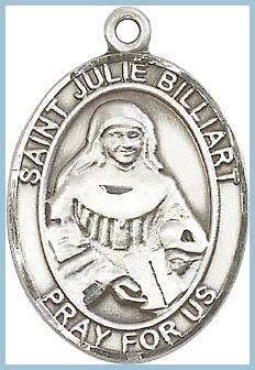 This St Julie medal is a sterling silver saint pendant with chain options and gift box. This medium size is appropriate for girls, women, young boys, and men who prefer smaller religious jewelry. This Catholic medal would make a nice gift for a candidate who chose Julie Billiart for a Confirmation name, or for anyone with a devotion to her. This Catholic pendant includes options for engraving. She is a patron saint of poverty and sick people. Her feast day is April 8. We can personalize the back of the pendant for you.
